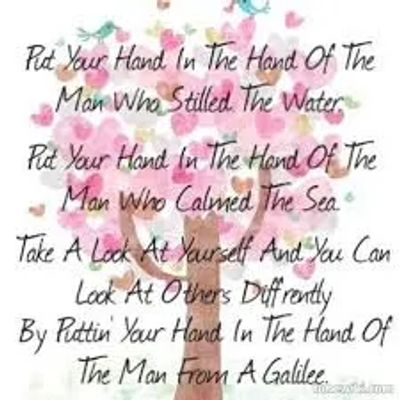 This song was written by a singing group by the name of “Ocean”. When I did some research on it, I found it was meant to explore themes of faith, self-reflection and moral accountability. The lyrics encourage listeners to seek guidance from a higher power symbolized by putting your hand in the hand of Jesus. Take a minute and imagine feeling your hand in His. There are now words to describe it. By thinking about putting your hand in His, invites a very personal connection with faith, showing us the transformative power of belief and how important it is to do some self-examination (which is what I am in the process of doing). The song also shows us there is always the hope for spiritual renewal.